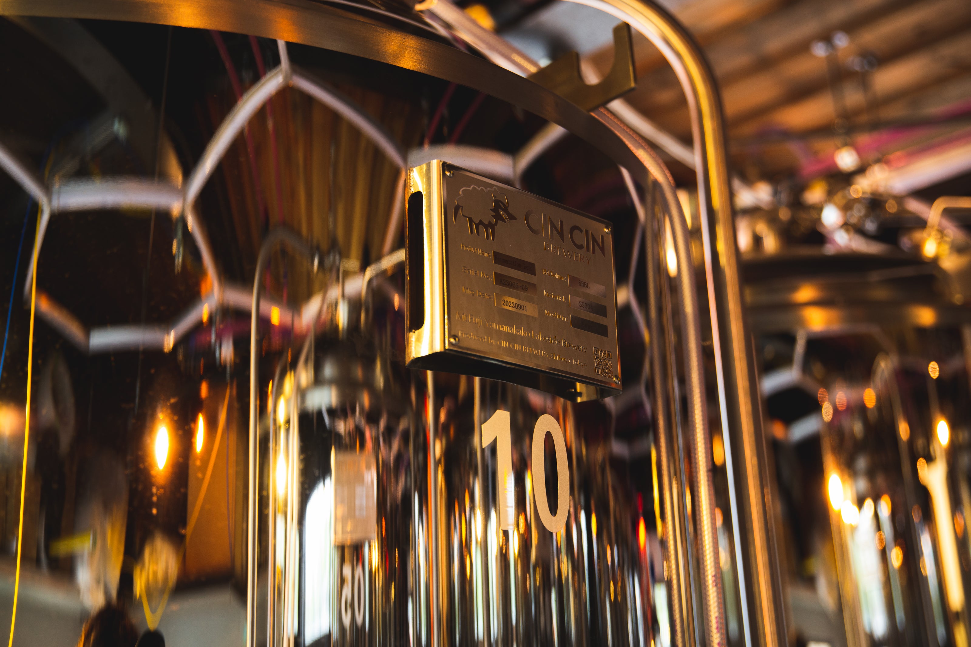 ブルワリー1階に醸造所が併設。8Kミラータンクはタップルームに直結なので、出来立てのビールを提供しています。Brewed downstairs and poured upstairs, always fresh from the tank.